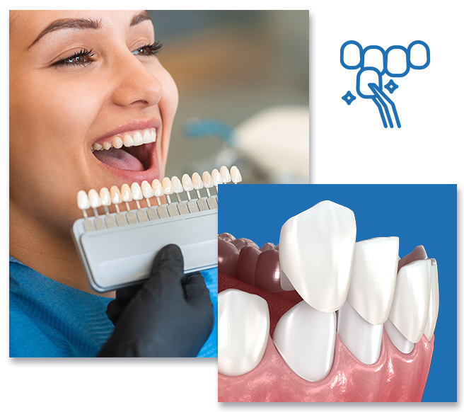 Custom-made porcelain veneers are thin shells that cover the front surface of teeth to correct chips, stains, gaps, or misalignment for a flawless smile.